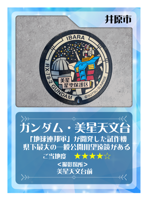 バンダイナムコグループの「ガンダムプロジェクト」が企画する「ガンダムマンホールプロジェクト」で、『機動戦士ガンダム』シリーズに登場するキャラクターが描かれたオリジナルマンホールが全国に設置されています。
