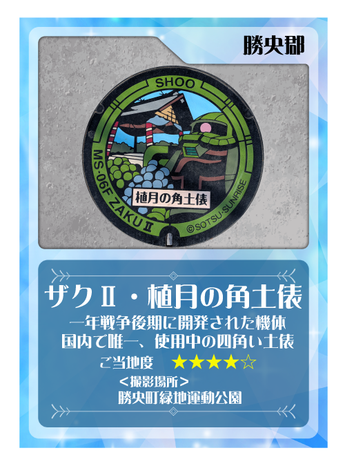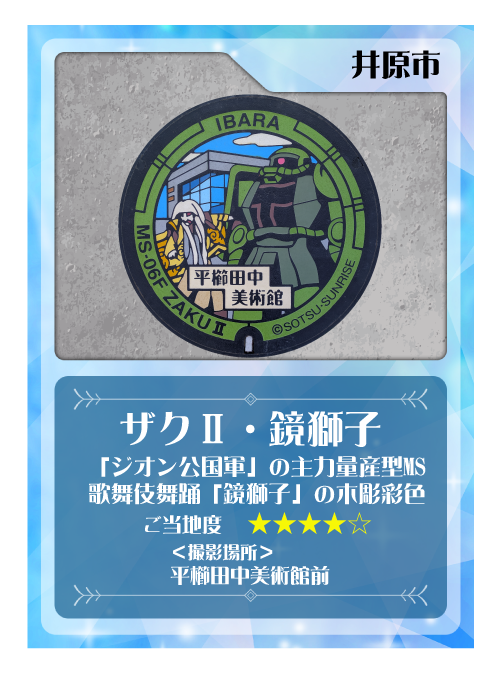 バンダイナムコグループの「ガンダムプロジェクト」が企画する「ガンダムマンホールプロジェクト」で、『機動戦士ガンダム』シリーズに登場するキャラクターが描かれたオリジナルマンホールが全国に設置されています。